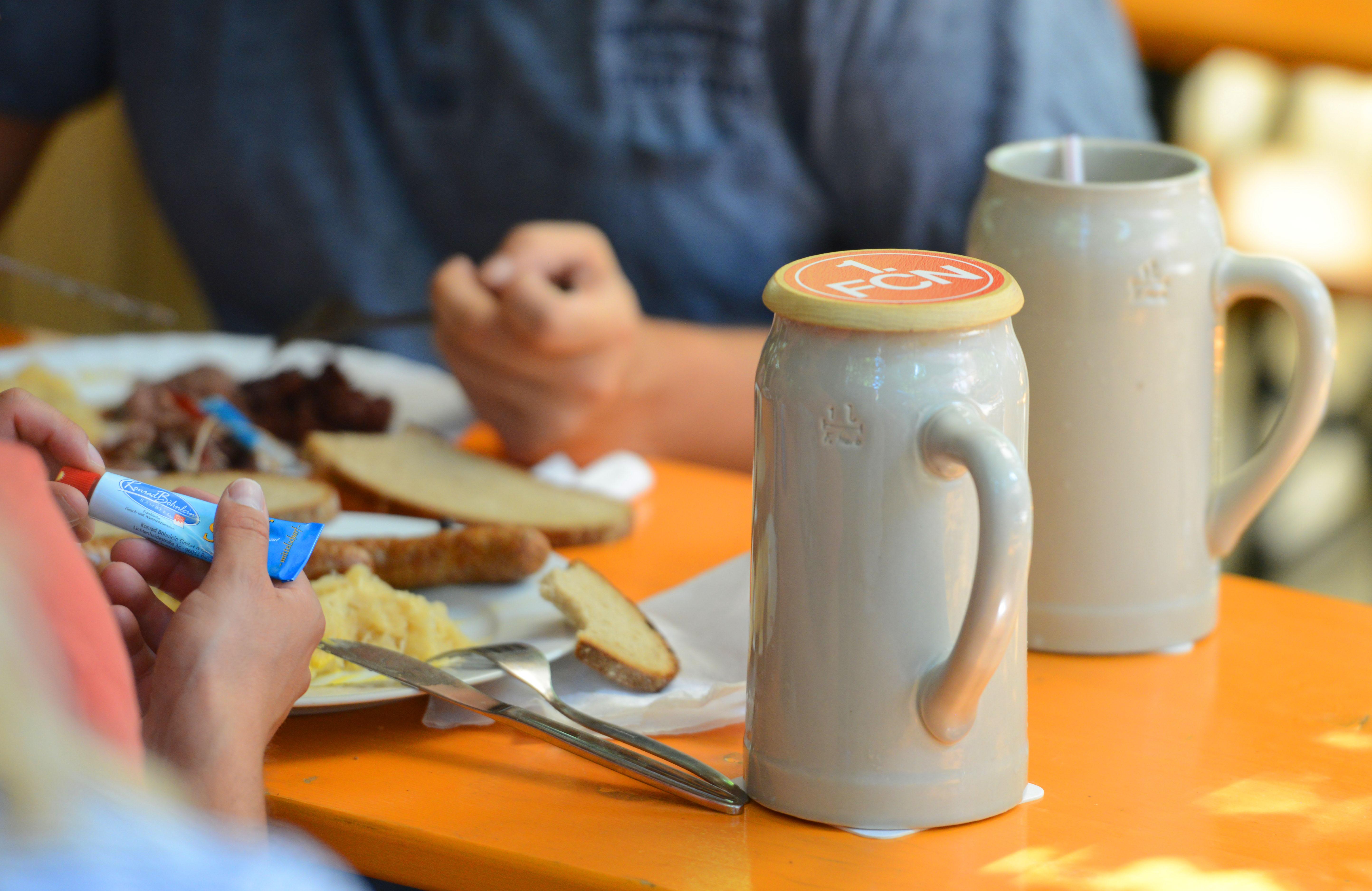 Maßkrüge und Essenstabletts für den guten Zweck gewuchtet